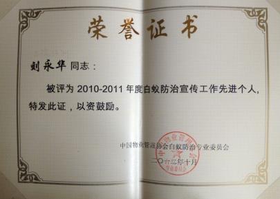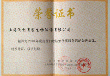 2013年度房屋白蟻防治優(yōu)質服務先進集體