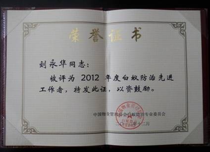 榮獲2012年度白蟻防治先進工作者